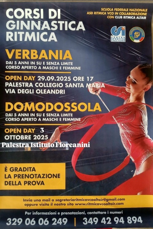 Giovedì, Verbania, 15.00-17.00 (ginnaste che riescono, altrimenti fare 17.00-20.00 al mercoledi alle Floreanini)